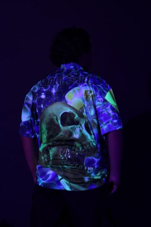 Skull Candy Blacklight Hawaiian Printed Shirt